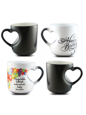 Experience the perfect valentine gift with our Magic Mug Heart Handle! This collectable mug is black in color and features a cute heart handle. Personalize it by printing your favorite photos and messages. Simply pour hot water and watch the magic happen. A must-have for any magic mug collection.